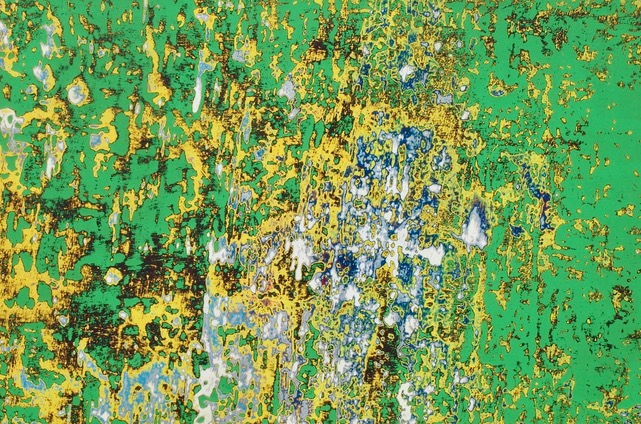 この技法は、戦後のアンフォルメルやマチエール絵画の系譜と共鳴し、ジャン・デュビュッフェやアントニ・タピエス、近年のゲルハルト・リヒターの層表現にも近い試みとして位置づけられる。沖縄の光と風化の感覚が染み込んだ色面は、時間と素材が融合した独自の抽象空間を展開し独自の抽象表現として完成されています。