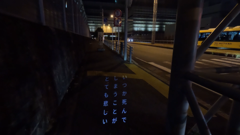 「モビル文学」は、自転車による移動と投影技術を文学表現と融合させることを目指した連作です。映像装置に改造した自転車を用いて、各街を舞台に執筆したテキストをその土地の地面に投影しながらサイクリングします。