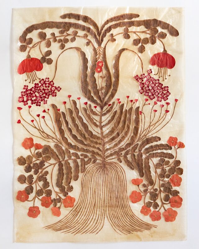 今村⽂は、花や植物を主なモチーフに、半透明のグラシン紙に⽔彩やコラージュを施した作品や、エンコスティックと呼ばれる蜜蝋画の手法を使った作品を制作している現代アーティスト。1982 年、愛知県生まれ。2008 年、⾦沢美術工芸大学大学院美術工芸研究科絵画専攻油画コース修了。現在愛知県在住。主な展覧会に、「The Garden of Musubi」(Lyndsey Ingram、2025 年)、「見えない庭」(資生堂アートエッグ/資生堂ギャラリー、2019 年)、「プランツ・プラネッツ」(はじまりの美術館、福島、2017 年)、あいちトリエンナーレ 2016、「東京芸術植物園」(愛知県立美術館、2015 年)など。